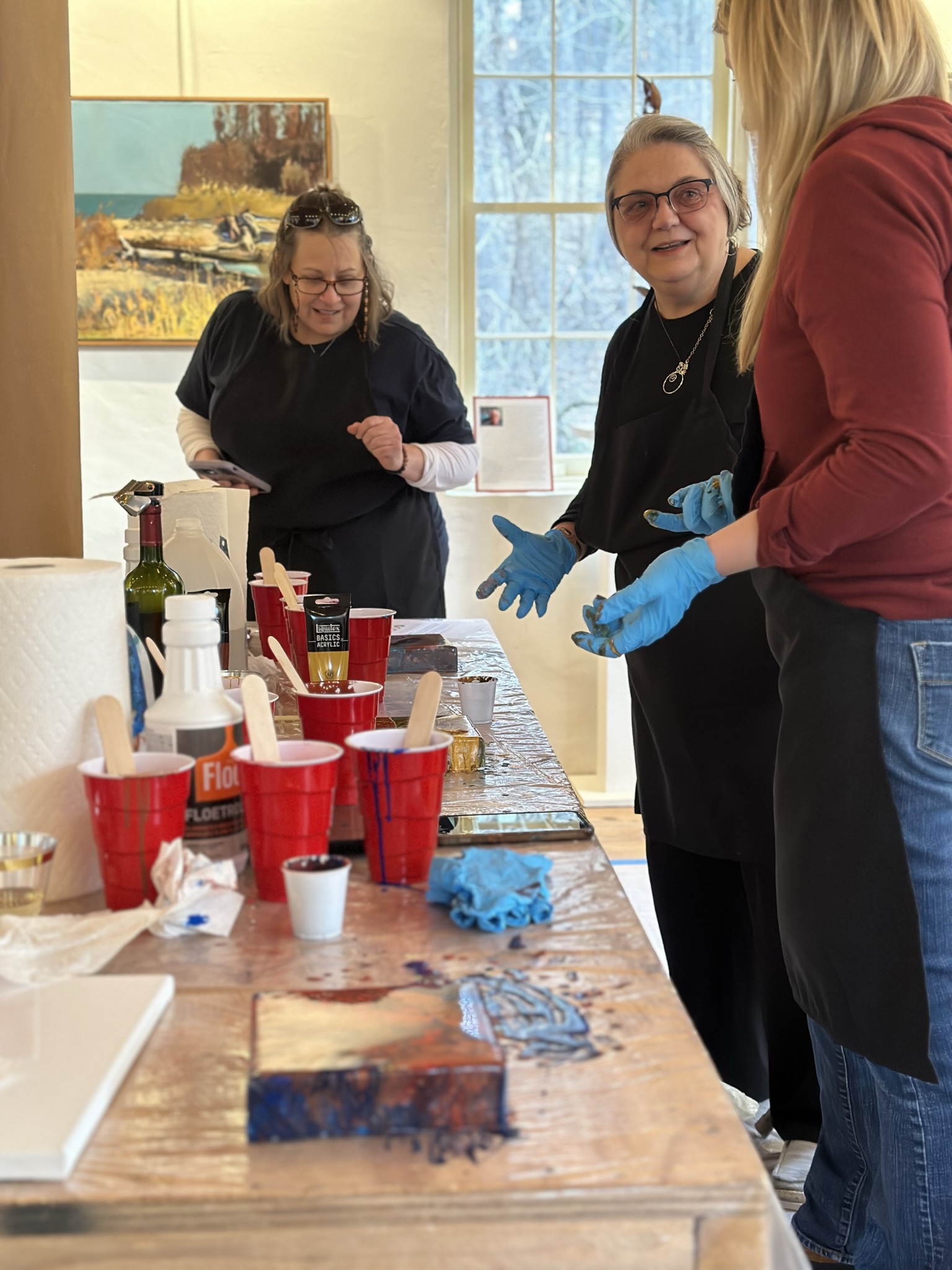 Fluid Art Class – $90/person (1 wooden ornament, 1 6×6” painting, & 1 12×12” painting)