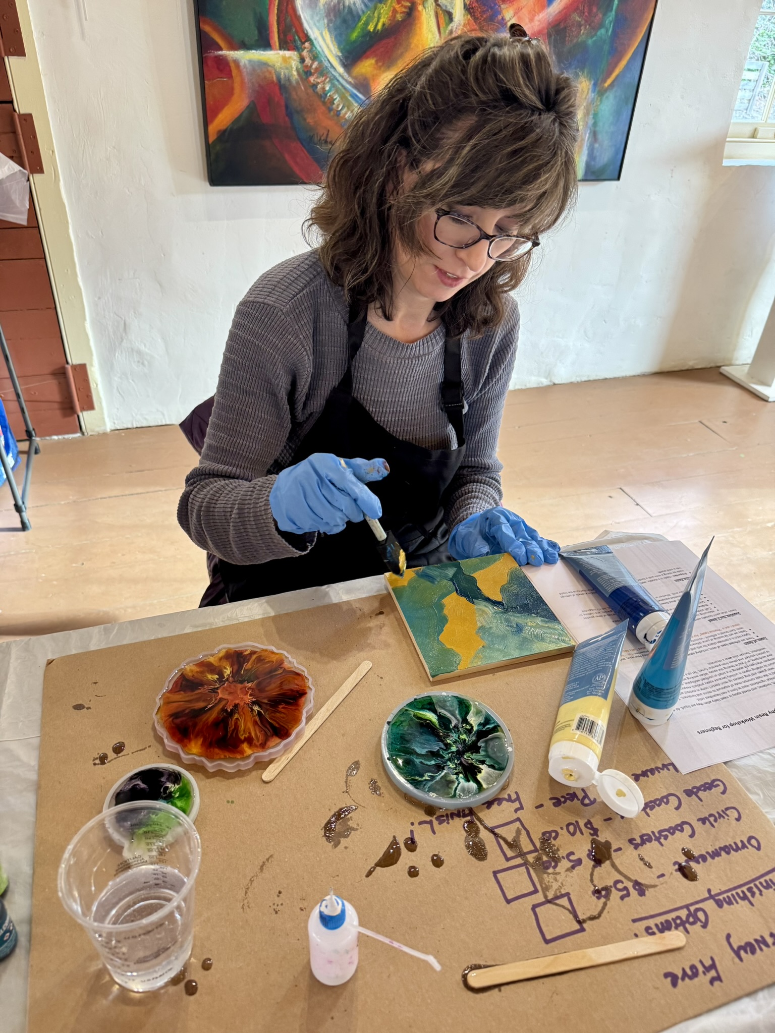 Dream Topography Studio offers you and your guests a fully immersed creative experience creating fluid or resin art in a professional art studio!