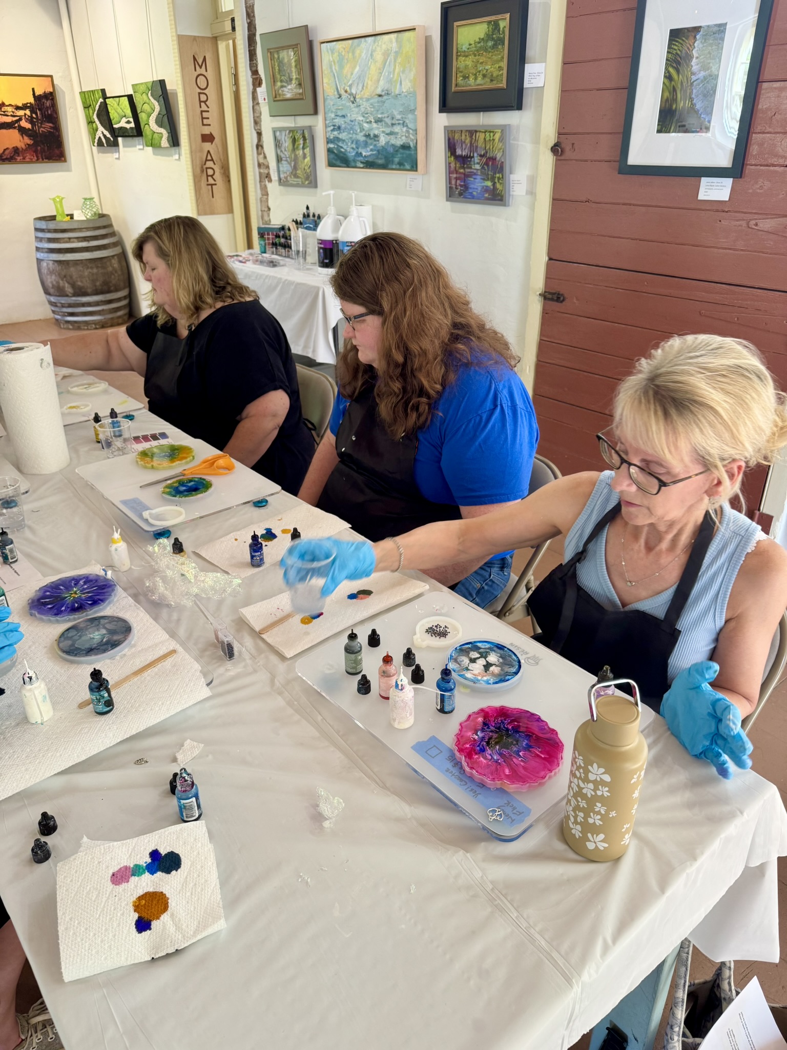 Beginners Resin Class – $100/person (1 ornament, 1 circle coaster, & 1 6×6” art piece)